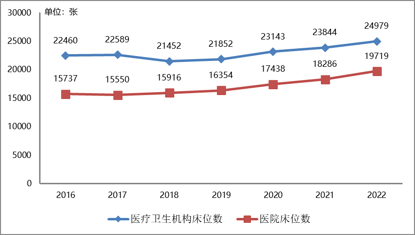 2016-2022年全市醫(yī)療機構(gòu)床位數(shù)