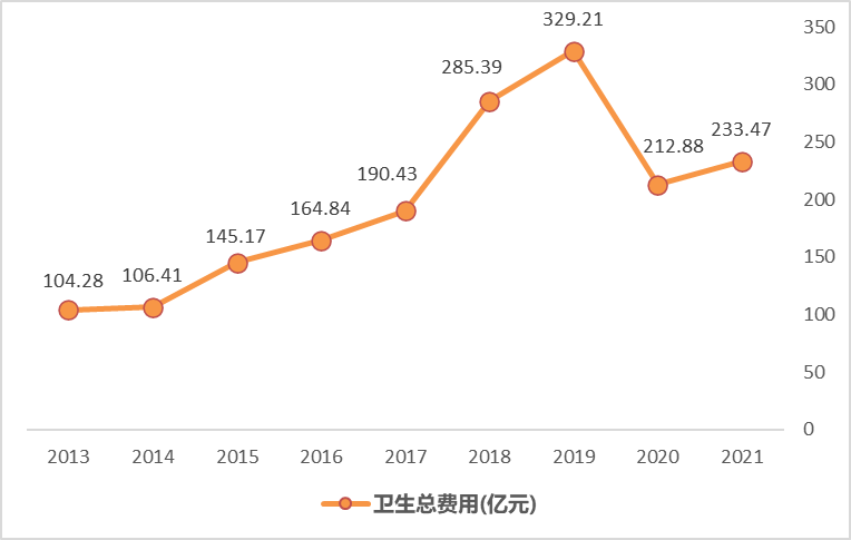 (四)設(shè)備。截至2022年底,全市醫(yī)療衛(wèi)生機構(gòu)擁有萬元以上設(shè)備臺數(shù)達38249臺,比上年增加3645臺,增長10.53%,其中:10-49萬設(shè)備8206臺、50-99萬設(shè)備1467臺、100萬及以上設(shè)備1266臺。 (五)衛(wèi)生總費用。2021年全市衛(wèi)生總費用達233.47 億元,占全市GDP比重為4.69%,其中:政府衛(wèi)生支出66.13 億元,社會衛(wèi)生支出107.00億元,個人現(xiàn)金衛(wèi)生支出60.34億元,所占衛(wèi)生總費用比重分別為28.32%、45.83%、25.84%。與2020年相比,全市衛(wèi)生總費用增長9.67%。