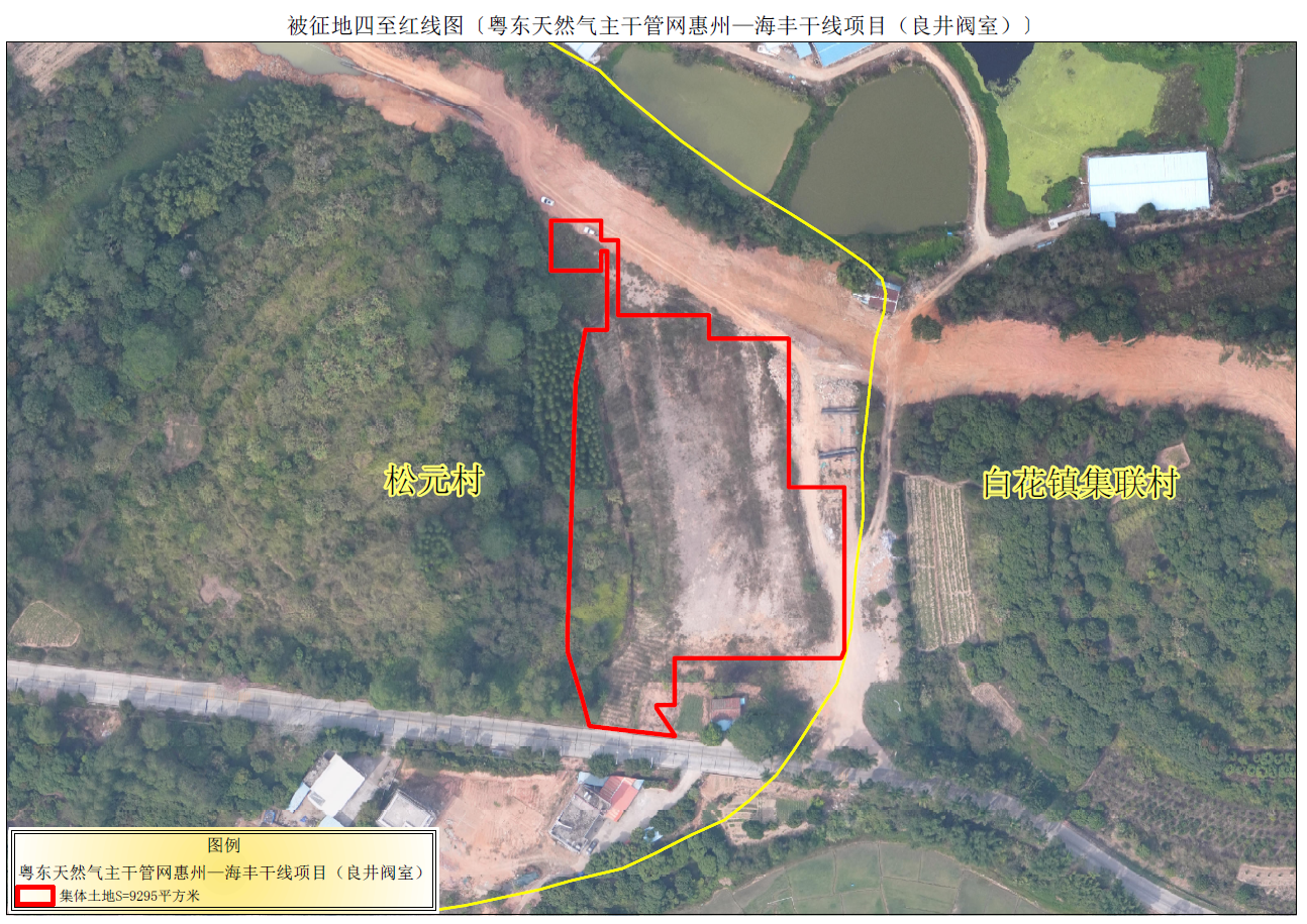 惠陽府告〔2023〕65號(hào) 為了公共利益需要,根據(jù)《中華人民共和國土地管理法》《中華人民共和國土地管理法實(shí)施條例》《廣東省土地管理?xiàng)l例》《惠州市集體土地征收與補(bǔ)償辦法》(惠府〔2021〕27號(hào))等法律法規(guī),經(jīng)惠州市惠陽區(qū)人民政府研究決定,擬征收惠州市惠陽區(qū)良井鎮(zhèn)松元村地段合計(jì)0.9295公頃集體土地,作為粵東天然氣主干管網(wǎng)惠州-海豐干線項(xiàng)目(良井閥室)建設(shè)用地,現(xiàn)依法發(fā)布土地征收預(yù)公告: 一、擬征收土地的位置、范圍和面積 擬征收地塊位于惠州市惠陽區(qū)良井鎮(zhèn)松元村地段,屬惠州市惠陽區(qū)良井鎮(zhèn)松元村長(zhǎng)途股份經(jīng)濟(jì)合作社所有的集體土地,面積合計(jì)0.9295公頃。四至范圍詳見附件《被征地四至紅線圖〔粵東天然氣主干管網(wǎng)惠州-海豐干線項(xiàng)目(良井閥室)〕》。 二、征收土地的征收目的 本次擬征收土地用于粵東天然氣主干管網(wǎng)惠州-海豐干線項(xiàng)目(良井閥室)建設(shè)。 三、開展土地現(xiàn)狀調(diào)查安排 自本公告發(fā)布之日起,由惠州市惠陽區(qū)自然資源局會(huì)同惠州市惠陽區(qū)良井鎮(zhèn)人民政府組織有關(guān)單位進(jìn)行土地現(xiàn)狀調(diào)查,內(nèi)容包括擬征收土地的權(quán)屬、地類、面積,以及農(nóng)村村民住宅、其他地上附著物和青苗等的權(quán)屬、種類、面積、數(shù)量等信息。調(diào)查結(jié)果將與被征地的農(nóng)村集體經(jīng)濟(jì)組織、農(nóng)民、青苗和地上附著物產(chǎn)權(quán)人共同確認(rèn),請(qǐng)各相關(guān)單位和個(gè)人相互告知,并予以配合。 四、其他事項(xiàng) 本預(yù)公告的公告期自2023年9月1日至2023年9月15日止。 自本預(yù)公告發(fā)布之日起,在擬征地范圍內(nèi),惠州市公安局惠陽區(qū)分局、惠州市惠陽區(qū)住房和城鄉(xiāng)建設(shè)局、惠州市惠陽區(qū)市場(chǎng)監(jiān)督管理局、惠州市惠陽區(qū)自然資源局等有關(guān)部門暫停辦理下列事項(xiàng),待征地補(bǔ)償工作完成后恢復(fù)辦理: (一)審批新增建設(shè)項(xiàng)目用地。 (二)審批新建、改建、擴(kuò)建房屋。 (三)辦理入戶和分戶,但因結(jié)婚、出生、回國、退伍轉(zhuǎn)業(yè)、畢業(yè)生戶籍回遷、刑滿釋放等原因應(yīng)當(dāng)入戶的除外。 (四)以被征收人土地上房屋為注冊(cè)地址辦理經(jīng)營注冊(cè)登記、變更手續(xù)。 (五)改變土地、房屋用途。 (六)房屋、土地的轉(zhuǎn)讓、租賃和抵押。 自本預(yù)公告發(fā)布之日起,任何單位個(gè)人不得在擬征地范圍內(nèi)搶栽搶建;違反規(guī)定搶栽搶建的,對(duì)搶栽搶建部分不予補(bǔ)償。 聯(lián)系人:周柳軍;聯(lián)系電話:0752-3656045。 附件:被征地四至紅線圖〔粵東天然氣主干管網(wǎng)惠州-海豐干線項(xiàng)目(良井閥室)〕