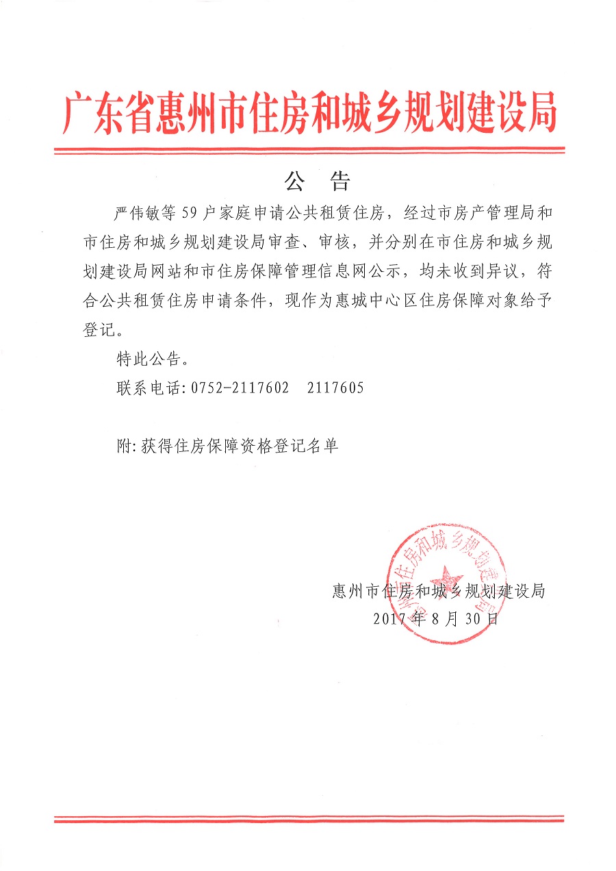 獲得住房保障資格登記名單