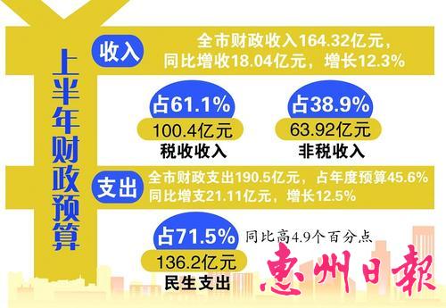 上半年,全市民生支出136.2億元,增長20.7%,比一般公共預算支出增幅高8.2個百分點,占一般公共預算支出比重的71.5%,比上年同期高4.9個百分點。