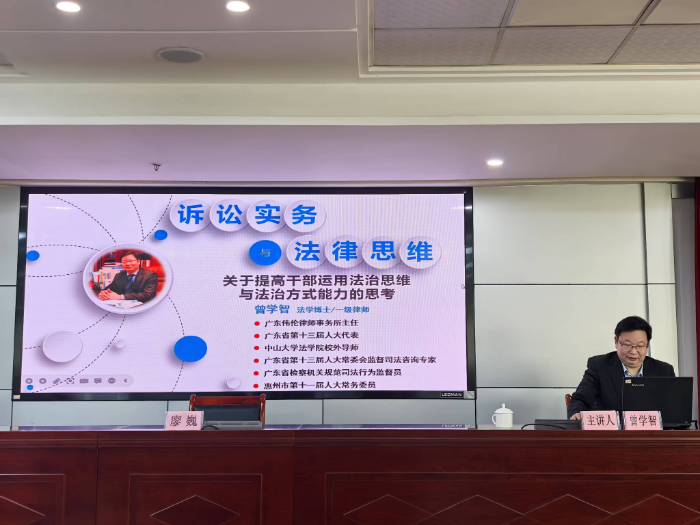 11月26日上午,舉行2024年度工信講堂暨第11次黨組理論學習中心組學習(擴大)會議,傳達學習習近平法治思想。局黨組書記、局長廖巍出席會議,黨組成員、機關黨委書記鐘優良主持并領學,局干部職工共70余人參加。會議邀請了廣東偉倫律師事務所律師曾學智作《訴訟實務與法治思維——關于提高干部運用法治思維和法治方式能力的思考》專題授課。曾學智律師從法治思維的時代要求、法治思維的直觀體現和訴訟實務案例三個部分進行講解,兼具學術性、實用性、指導性,對全局領導干部進一步學習領會習近平法治思想的核心內容、重要意義,提高法治思維能力具有良好的指導作用。會議強調,一是要提高政治站位,深入學習踐行習近平法治思想,自覺用習近平法治思想武裝頭腦、指導實踐、推動工作;二是要強化程序意識,提升依法決策水平,強化合法性審查剛性約束;三是要堅持嚴格規范、公正文明執法,提升執法規范化水平,建強工信系統行政執法隊伍;四是要全面落實普法責任制,增強工信領域普法實效,深入推進普法和政策宣貫進園區、進企業。(產業政策和規劃)