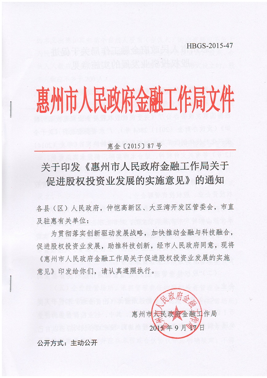 本意見適用于惠州市轄區內注冊的內資、外資、中外合資股權投資企業、股權投資管理企業。