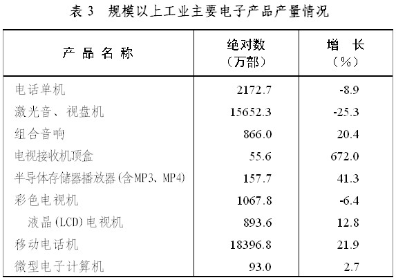 表3 規(guī)模以上工業(yè)主要電子產(chǎn)品產(chǎn)量情況