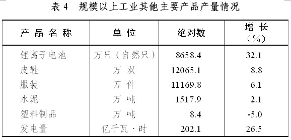 表4 規(guī)模以上工業(yè)其他主要產(chǎn)品產(chǎn)量情況