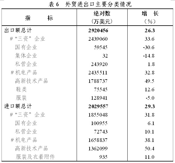 表6 外貿(mào)進(jìn)出口主要分類情況
