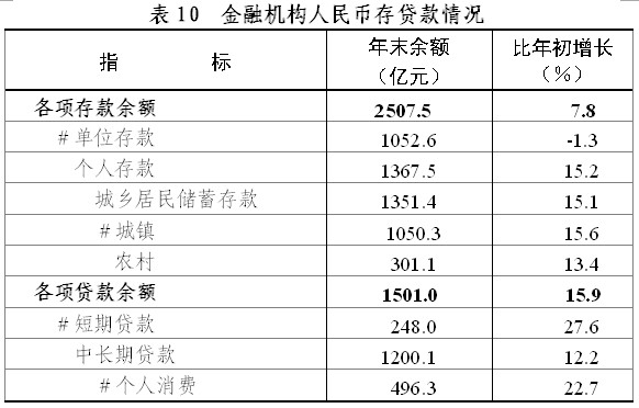 表10 金融機(jī)構(gòu)人民幣存貸款情況