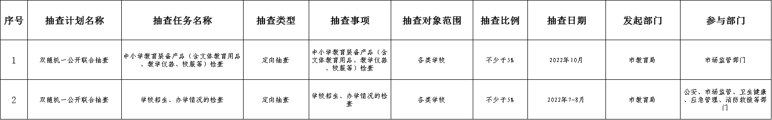 惠州市教育局2022年度市場監管領域部門聯合雙隨機抽查工作計劃