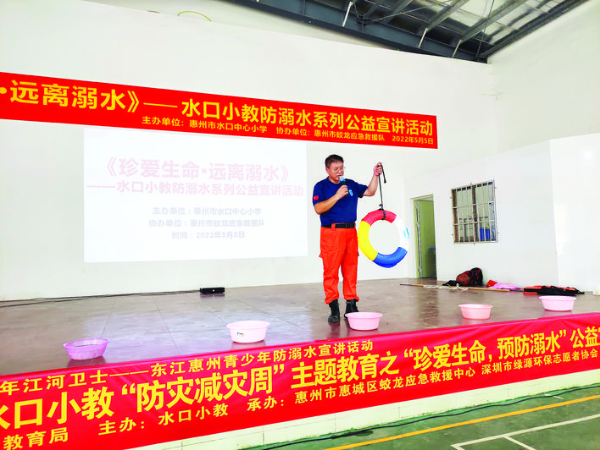 今年暑期,炎熱與臺風(fēng)交替,惠州市惠城區(qū)蛟龍應(yīng)急救援中心黨支部書記、主任郭成權(quán)特別忙碌,他帶領(lǐng)“蛟龍”隊員到學(xué)校、社區(qū)進(jìn)行多場防溺水宣講,同時開展水上救撈、道路受困車輛救援等。